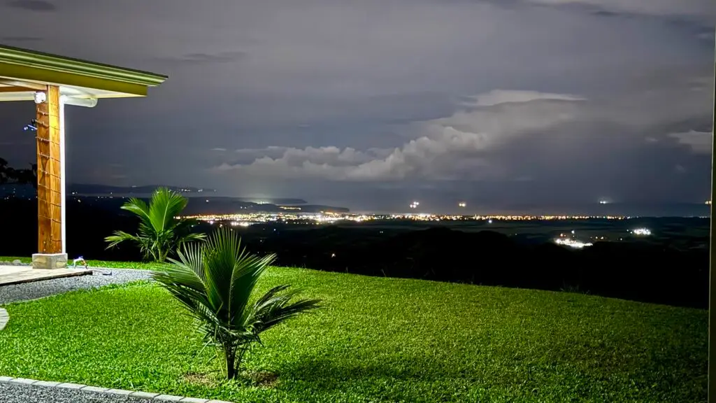 Das morgendliche Konzert der Brüllaffen, das vom Hang über das Tal trägt. Die kleinen Papageien, die in Grün-Gelb-Blau über das Grundstück fliegen. Der Gecko, der abends an der Küchenwand seinen Dienst tut. Die Schmetterlinge im Garten. Der Blick auf die Wolken, die sich über den Bergkamm schieben.