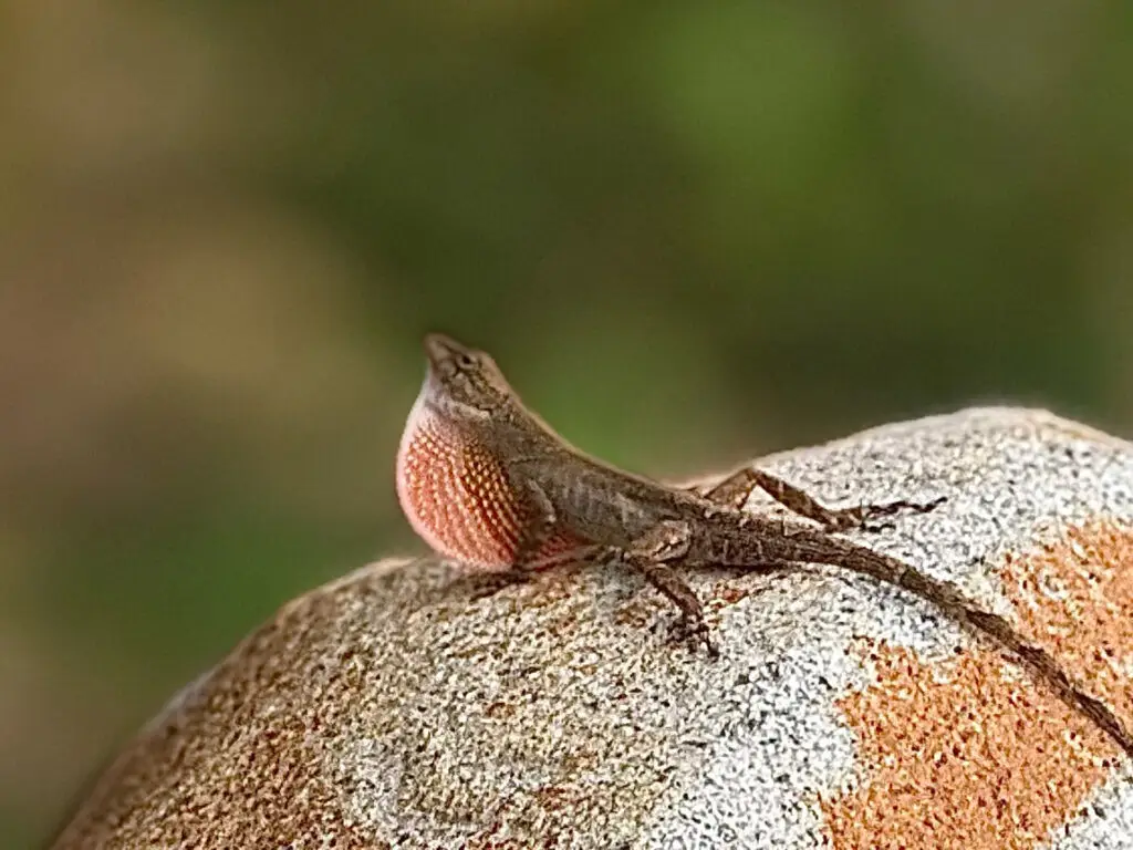 Leguane im Garten – der Grüne Leguan kann bis zu 1,70 Meter lang werden und sonnt sich gerne in Bäumen. Er ist ein reiner Pflanzenfresser und flüchtet bei jeder Annäherung. Harmlos und dekorativ.