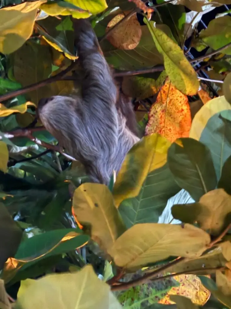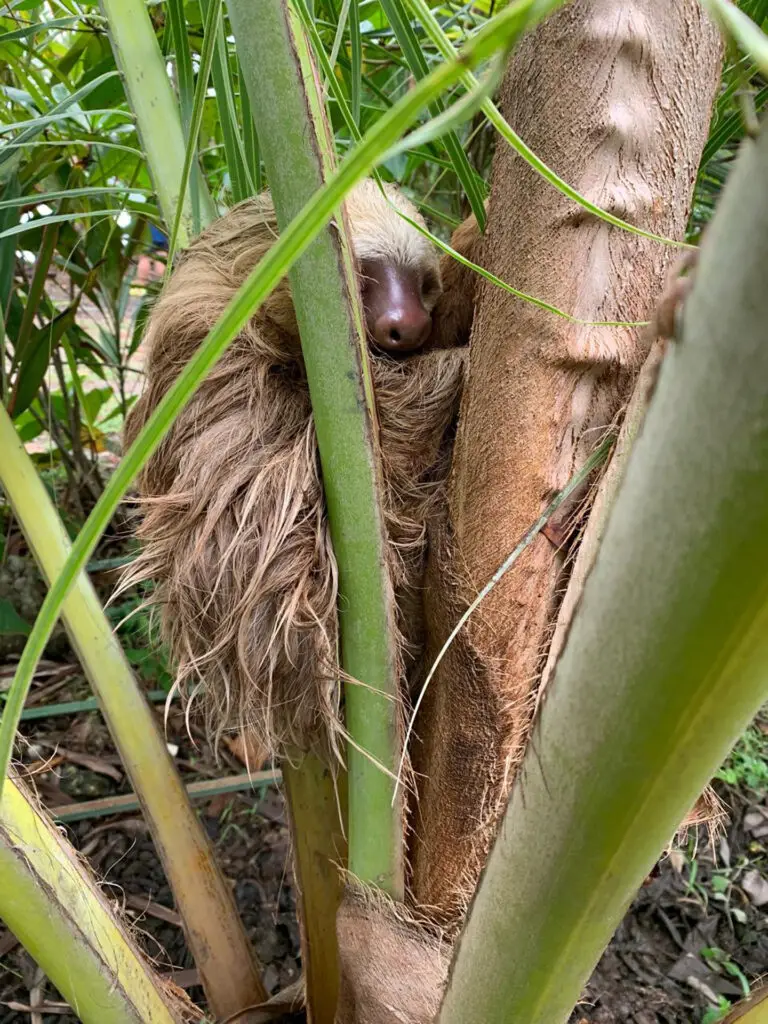 Zwei Faultierarten gibt es hier: das nachtaktive Hoffmann-Zweifingerfaultier und das tagaktive Braunkehlfaultier – das „lächelnde“ Faultier, das man so oft auf Fotos sieht. Sie schlafen bis zu 20 Stunden am Tag und bewegen sich in aller Seelenruhe durch die Baumkronen.